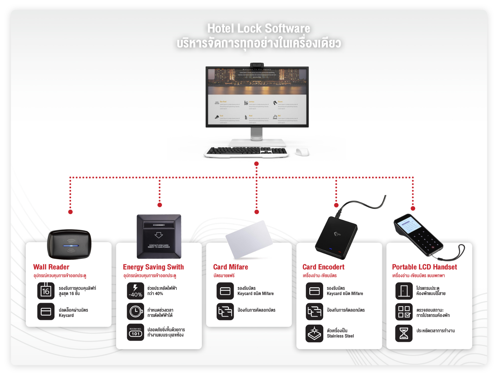 • ใชับัตร Mifare ใบเดียวทั้งอาคาร